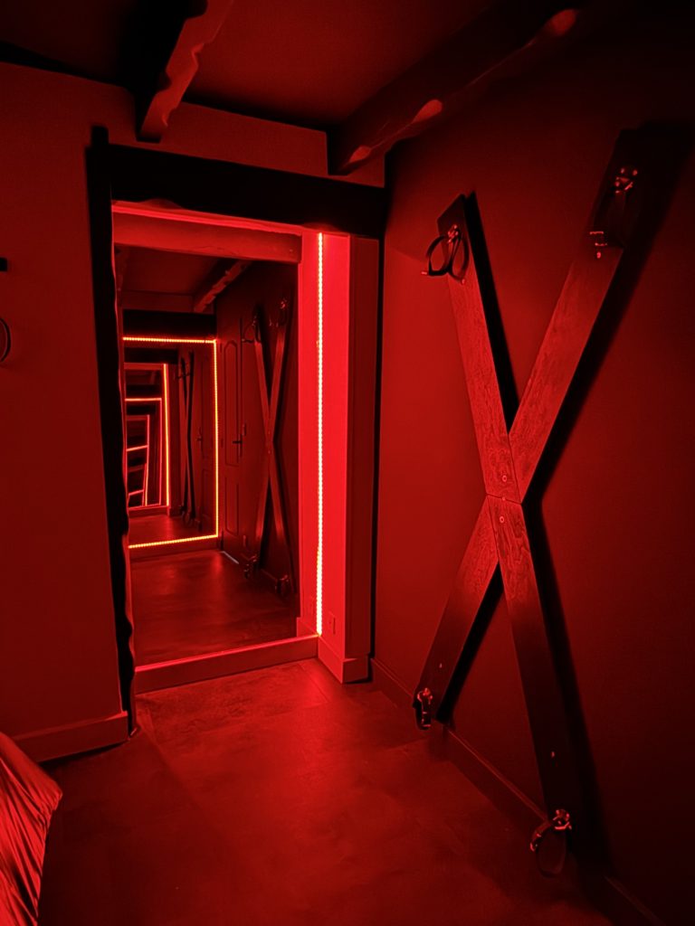 Une seconde pièce “rouge / donjon” apporte une dimension plus intense pour ceux qui le désirent.